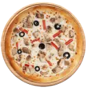 Chicken, capsicum, onion rings, sweet corn, olives, cheese